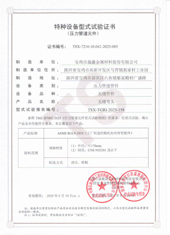 压力管道元件试验证书
